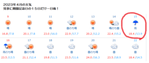 他にも季節イベントの初日とラストの日などの大事な日は雨ばかり