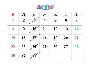 井上接骨院6月の休診日は定休日の火曜のみとなります。