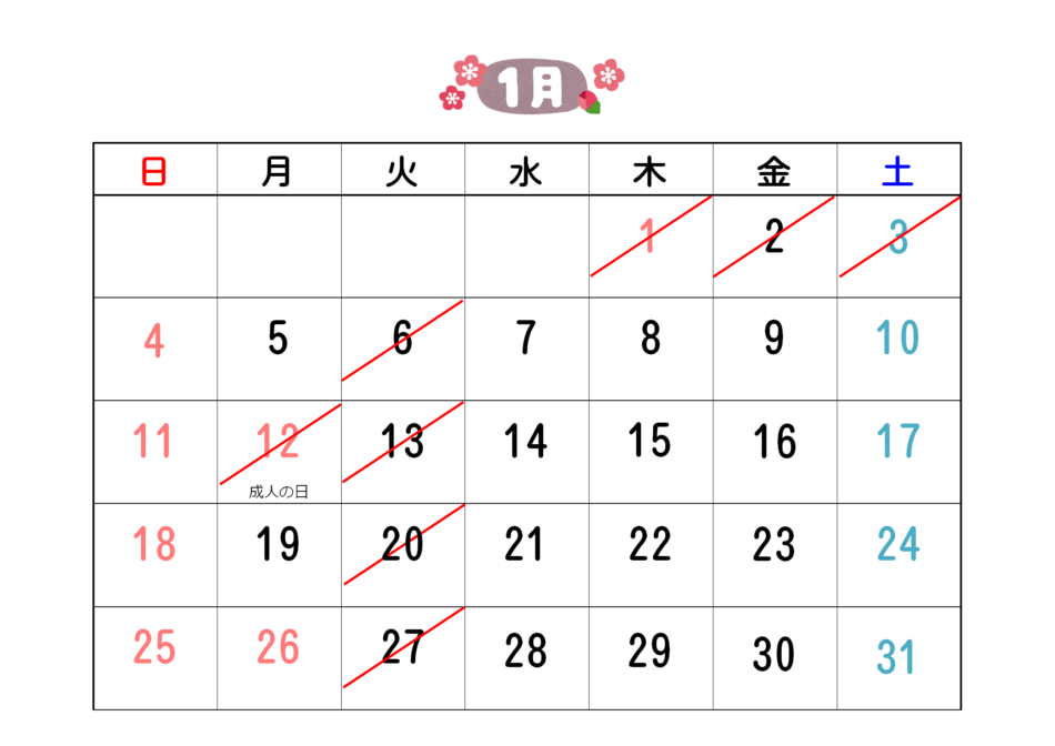 1月の休診日