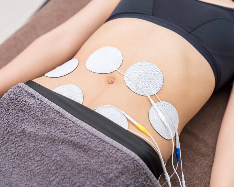 ①鍛えるべき部分を確実に狙う お腹周り、腰回り、臀部、足など鍛えたい部分にパッドを貼り特殊な電気を流します